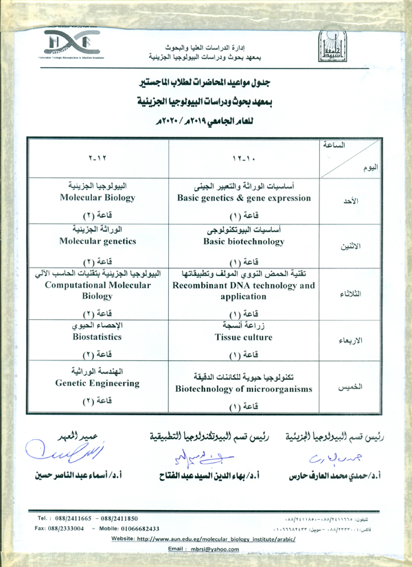 جدول مواعيد المحاضرات لطلاب الماجستير بالمعهد 13 فبراير 2020 جدول مواعيد المحاضرات لطلاب الماجستير بالمعهد
