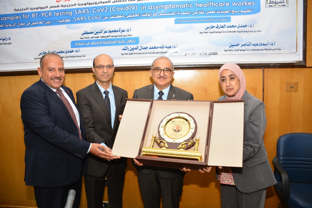و في مستهل المناقشة تقدمت الدكتورة أسماء عبد الناصر بتقديم درع تكريما للدكتور طارق الجمال لمجهوداته المشهودة ورعايته ودعمه للمعهد والذى تم انشائة كوحده عام 1996 وتم تحويله الى معهد يضم عدد من المرتكز والوحدات عام 2019 خلال فترة توليه منصب رئيس جامعة أسيوط.
