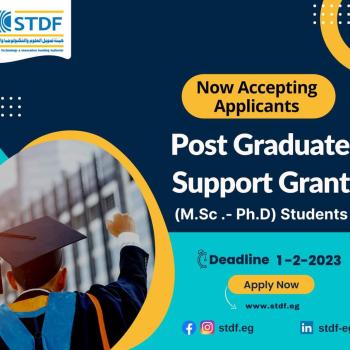 تعلن هيئة تمويل العلوم والتكنولوجيا والابتكار (STDF) عن فتح باب التقدم للنداء الثاني لتمويل طلاب الدراسات العليا (ماجستير – دكتوراه)
