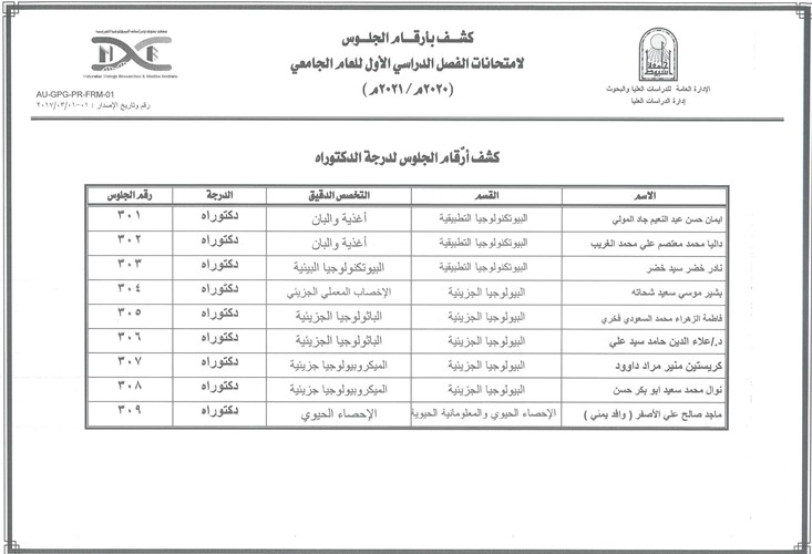 تم انعقاد سيمنار الطالبة/رباب شوبك صقر المسجلة لدرجة الدكتوراه بقسم البيوتكنولوجيا التطبيقية