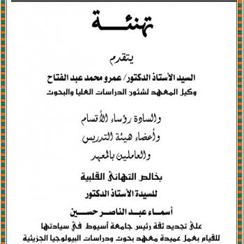 The Institute's council held its session No. (10) in the Institute Council Hall at 12 p.m.  on Wednesday 16/9/2020 The council is headed by Prof. Dr. Tarek Abdalla El-Gammal, President…