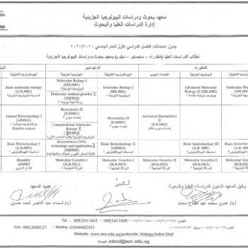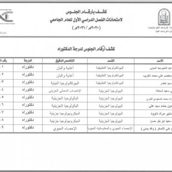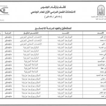 Seating numbers for the First semester of the master’s degree 2020-2021