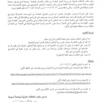 The Office of International Relations announces a workshop presented by the private liaison offices under the title (Your Career in Germany), which will be held on 23: 24/3/2021