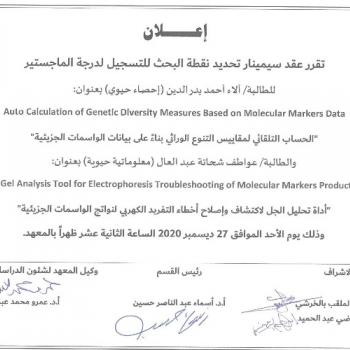 A workshop on Enzyme Linked Immuno-Sorbent Assay (ELISA) Principals & Western blotting will be held On 15-17/12/2020 In the lecture hall of the institute