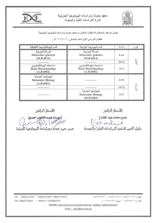 Schedule of lectures for First Semester 2020/2021- Ph.D Students