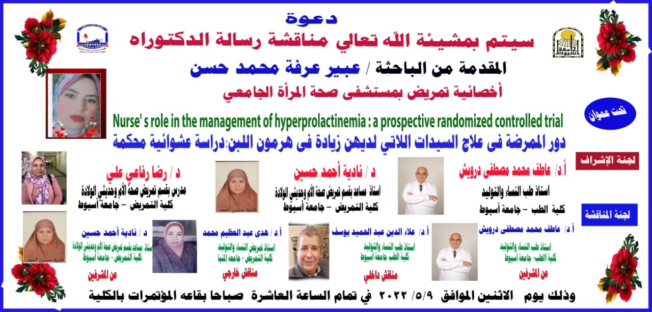 Dr. Nadia Ahmed Hussein, Assistant Professor, Department of Maternal and Newborn Health Nursing, Faculty of Nursing, Assiut University (for supervisors)