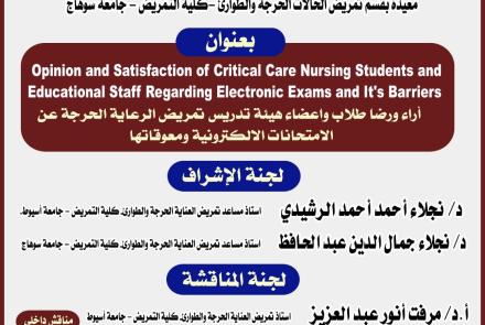 With pictures The master’s thesis of the researcher/Asmaa Ibrahim Muhammad Al-Zuhri, Faculty of Nursing, Sohag University, received an excellent grade.