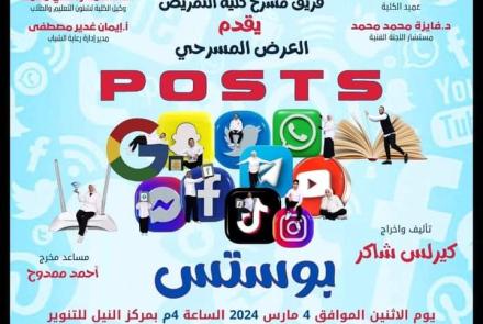 Wait for us tomorrow and the best cast performances of the Faculty of Nursing, a discussion of one of the most important issues of social problems, and the theatrical show Posts at four in the afternoon on the Nile Hall Theater at Assiut University.