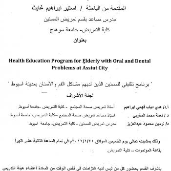 By God willing, doctoral thesis submitted by researcher/ Ester Ibrahim Ghaith - assistant lecturer, Geriatric Nursing Department, Faculty of Nursing, Sohag University - will be discussed on Thursday…
