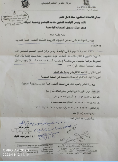 The University Education Development Center announces the following training courses for faculty members and their assistants, knowing that these courses are eligible for appointment to the position of (teacher - assistant professor - professor)