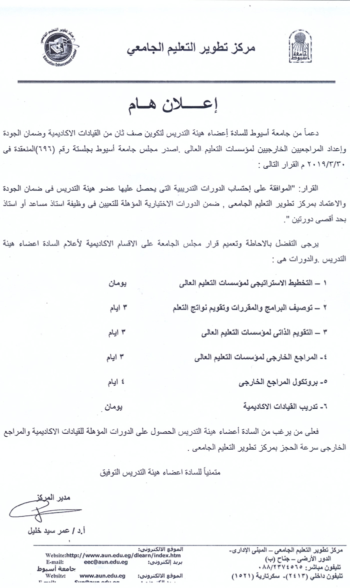 إحتساب الدورات التدريبية بمركز تطوير النعليم الجامعي 23 أبريل 2019 إحتساب الدورات التدريبية بمركز تطوير النعليم الجامعي
