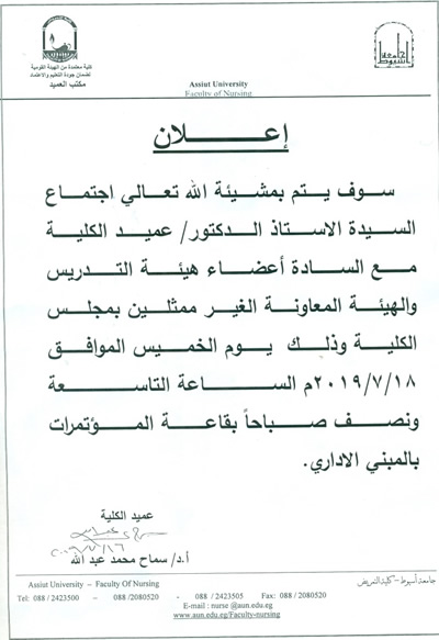 اجتماع السيدة الاستاذ الدكتور/ عميد الكلية مع السادة أعضاء هيئة التدريس والهيئة المعاونة الغير ممثلين بمجلس الكلية 16 يوليو 2019 اجتماع السيدة الاستاذ الدكتور/ عميد الكلية مع السادة أعضاء هيئة التدريس والهيئة المعاونة الغير ممثلين بمجلس الكلية