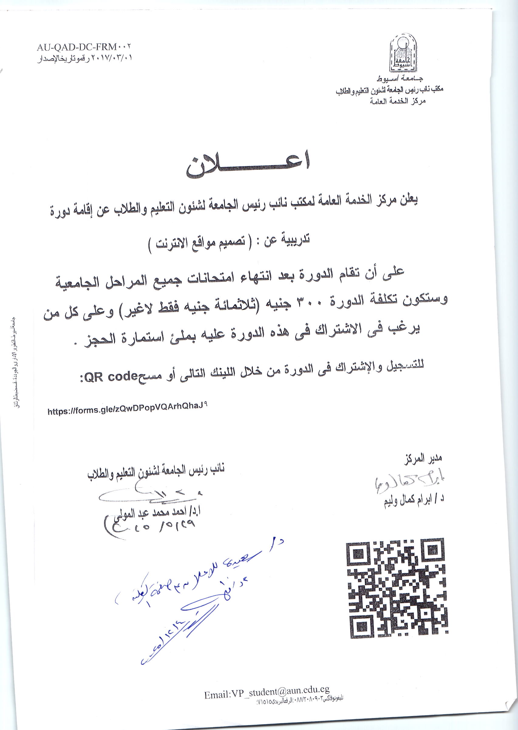 إعلان إقامة دورة تدريبيةعن :( تصميم مواقع الانترنت )