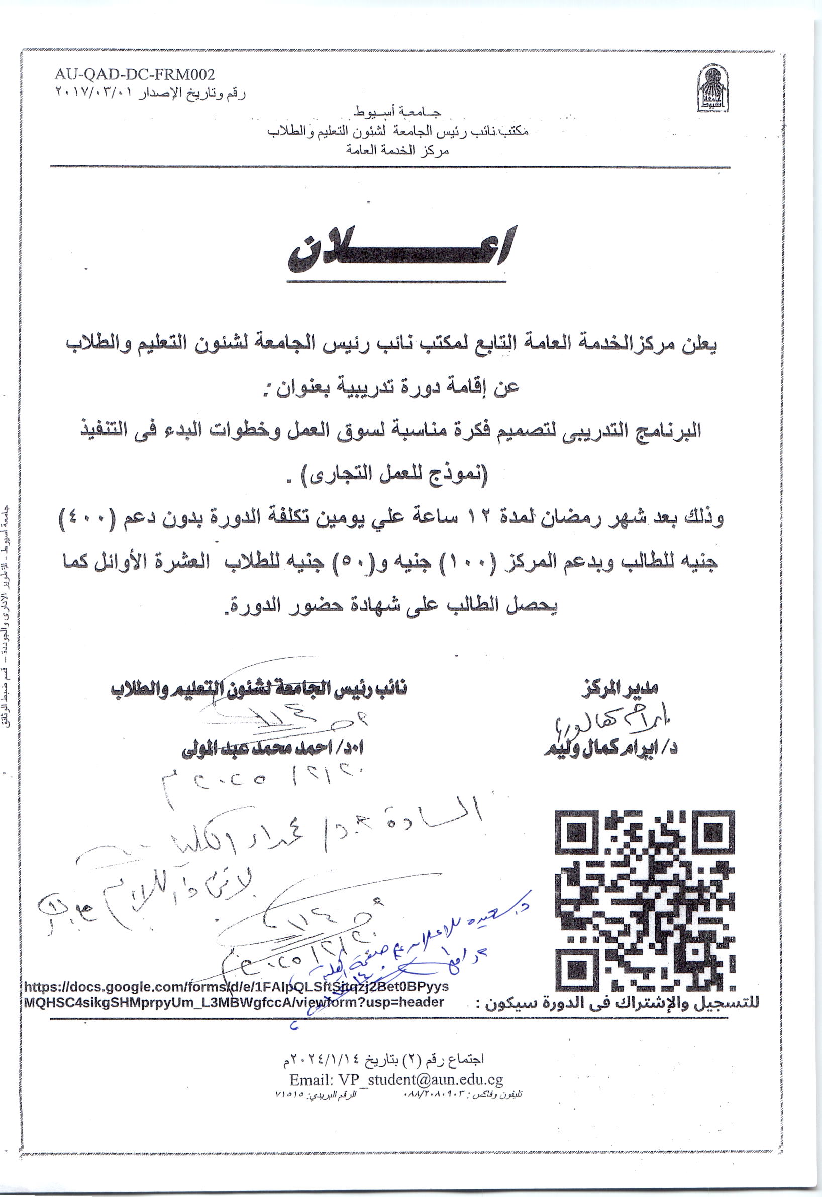 إعلان عن إقامة دورة تدريبية بعنوان البرنامج التدريبي لتصميم فكرة مناسبة لسوق العمل وخطوات البدء في التنفيذ 7 ديسمبر 2025