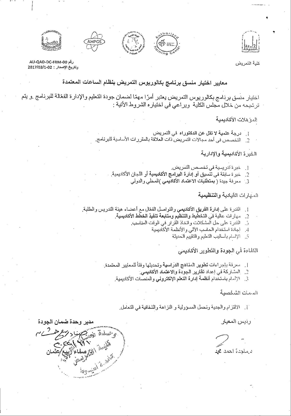 معايير اختيارمنسق برنامج بكالوريوس التمريض نظام الساعات المعتمدة