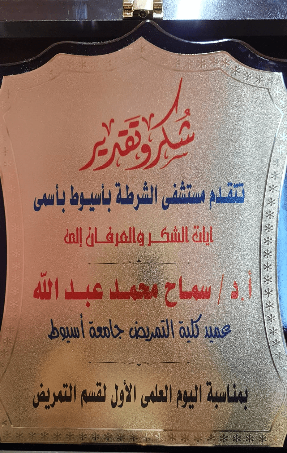 فى إطار دور الكلية الرائد في المشاركة المجتمعية وتوطيد التواصل بين فئات المجتمع المدنى والجامعى شاركت السيد الاستاذ الدكتور سماح محمد عبدالله عميد الكلية فى اليوم العلمى ألذى اقمتة مستشفى الشرطة باسيوط وبصحبتة السيد الاستاذ الدكتور ناهد شوكت ابو المجد استاذ بقسم ادارة التمريض والسيدة الدكتورة امال سيد محمد استاذ مساعد بقسم ادارة التمريض حيث قامت السيد الاستاذ الدكتور سماح محمد عبدالله بألقاء محاضرة عن التمريض ودورة الرائد ومهنتة السامية فى المجتمع وان الكلية تقدم يد العون لجميع منتسبى التمريض ومن يرغب فى استكمال الدراسات العليا كما تقدمت بخالص الشكر والعرفان للمقدم علياء الحسينى على الدعوة الكريمة والاستقبال والحفاوة لسيادتةوالسادة اعضاء هيئه التدريس المصاحبين له