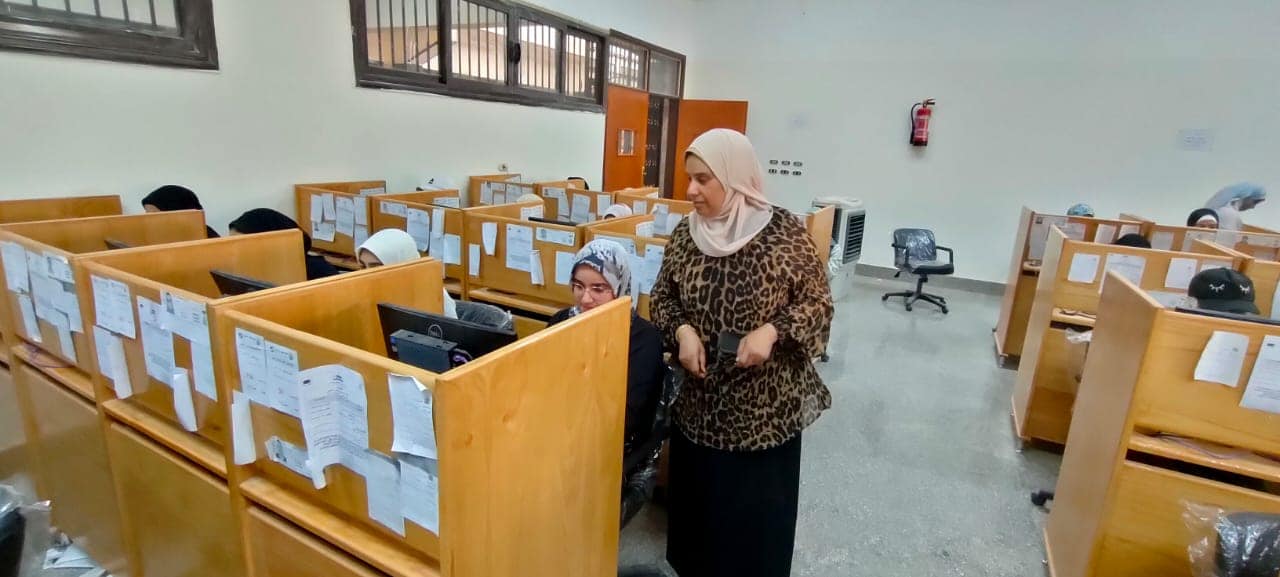 الامتحانات للطلاب الفرقة الثانية لمادة التمريض الباطنى والجراحى وحرصت على متابعة اللجان والاطمئنان على الطلاب داخل اللجان حيث شددت على تطبيق الإجراءات الإحترازية حرصا على جميع المشاركين فى أعمال الامتحانات من أعضاء هيئة التدريس والاداريين والطلاب
