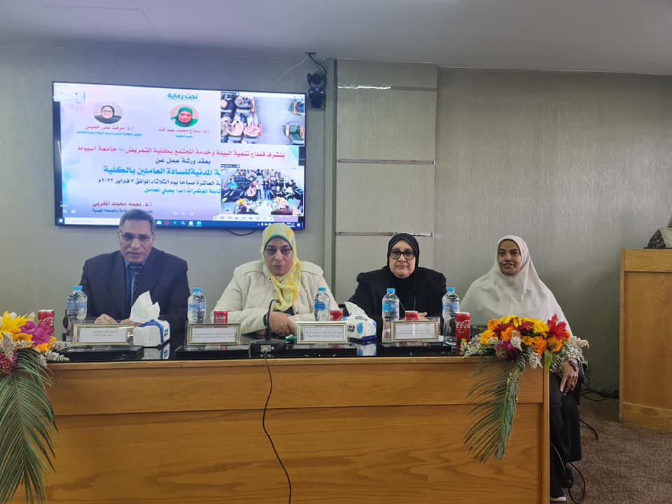 بافتتاح ورشة عمل في مجال الحماية المدنيه الساده العاملين بكليه التمريض