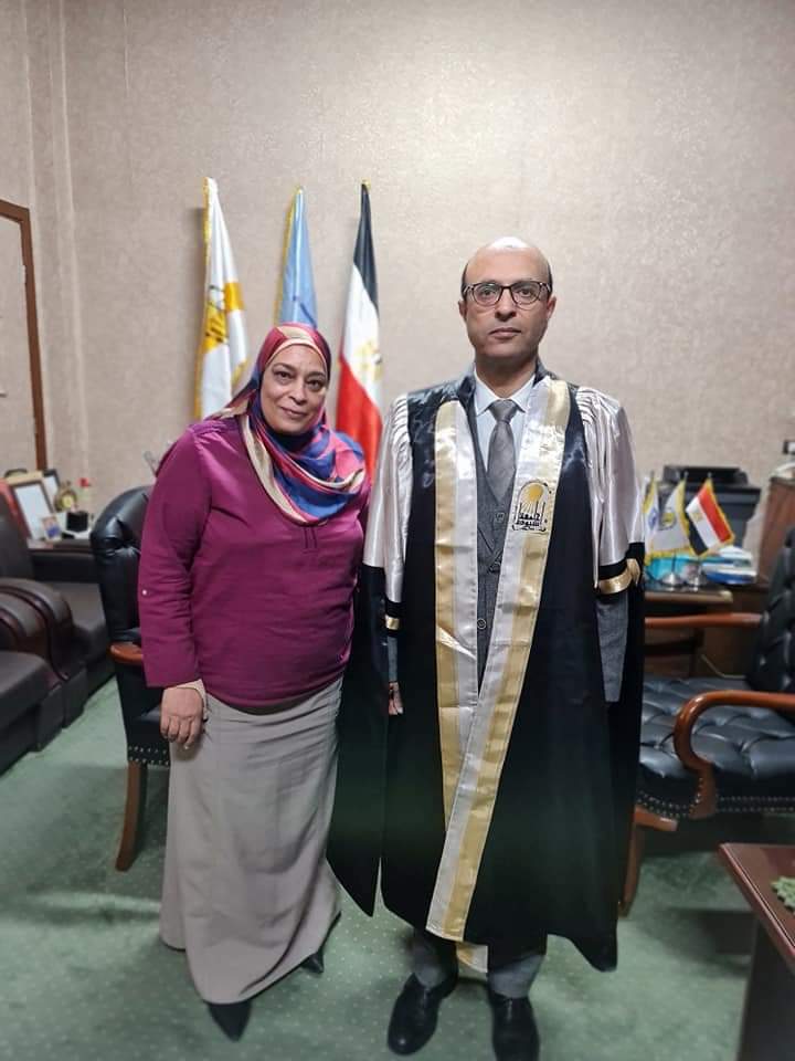 السيد الاستاذ الدكتور سماح محمد عبدالله عميد الكلية تستقبل السيد الاستاذ الدكتور أحمد المنشاوي رئيس الجامعة برحاب الكلية لمناقشة رسالة الماجستير الخاصة بالباحثةاميرة محمد عبد العزيز أخصائية عناية جراحة القلب والصدر بمستشفى القلب الجامعى