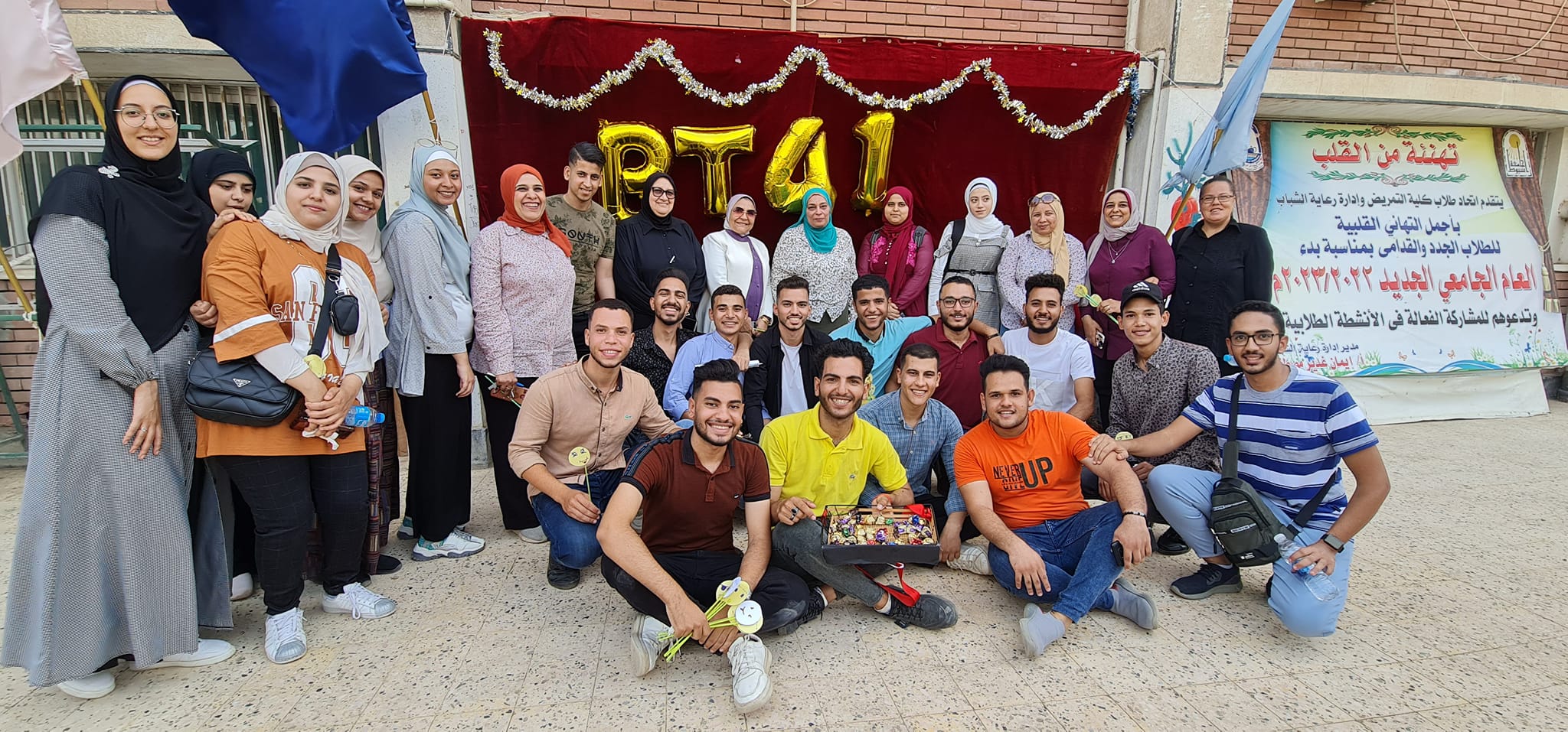 عميد الكلية السادة وكلاء الكلية والسادة أعضاء هيئه التدريس والسادة رواد الأسر بالكلية والسيدة الدكتورة منسق الأنشطة الطلابية وإدارة رعاية الشباب ومجلس اتحاد الطلاب وطلاب النشاط