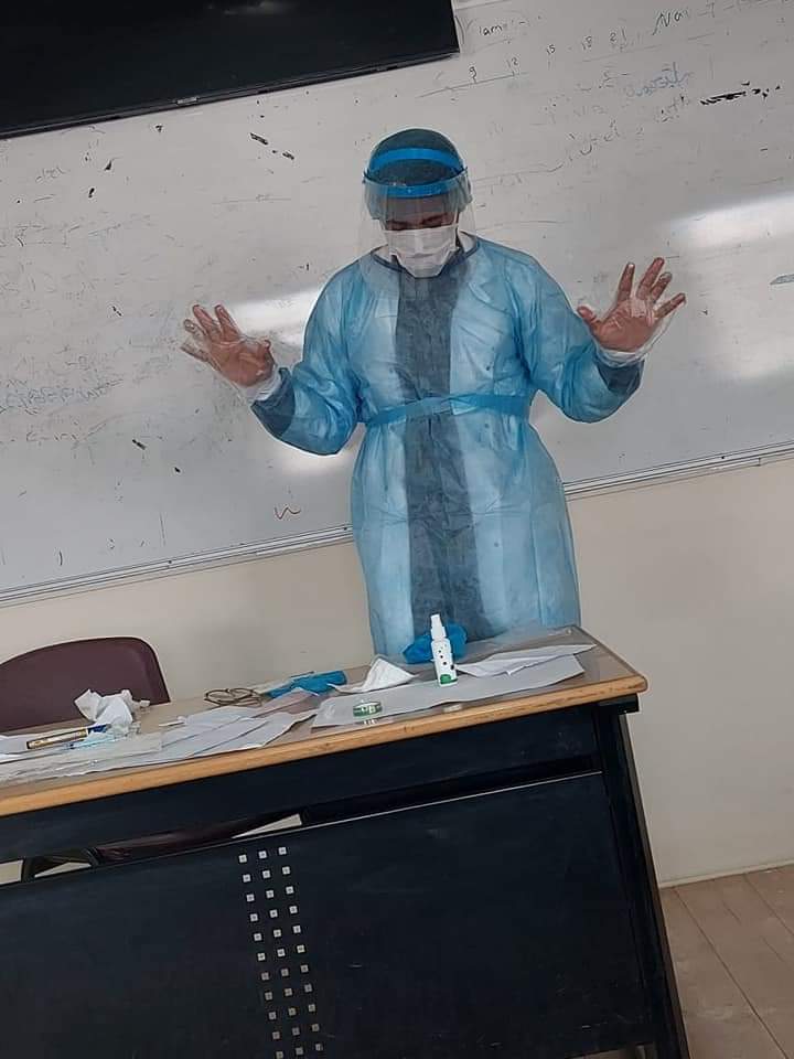 طلاب الفرقة الرابعة من البكالوريس يواصلون الدورة التدريبية لليوم الثاني على التوالي ضمن البرنامج التوجيهي لسنة التدريب الاجبارية لدورة مكافحة العدوى ودورة اسعافات أولية وكذلك حلقات نقاش عن العصف الذهنى وتبادل الخبرات بين الطلاب