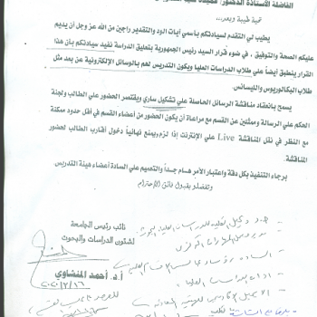 سوف يتم بمشيئة الله تعالى اجتماع لجنة شئون التعليم والطلاب برئاسة السيدة الأستاذ الدكتور/ انتصار محمد يونس- وكيل الكلية لشئون التعليم والطلاب .وذلك يوم الثلاثاء الموافق 7/4/2020م بكلية…
