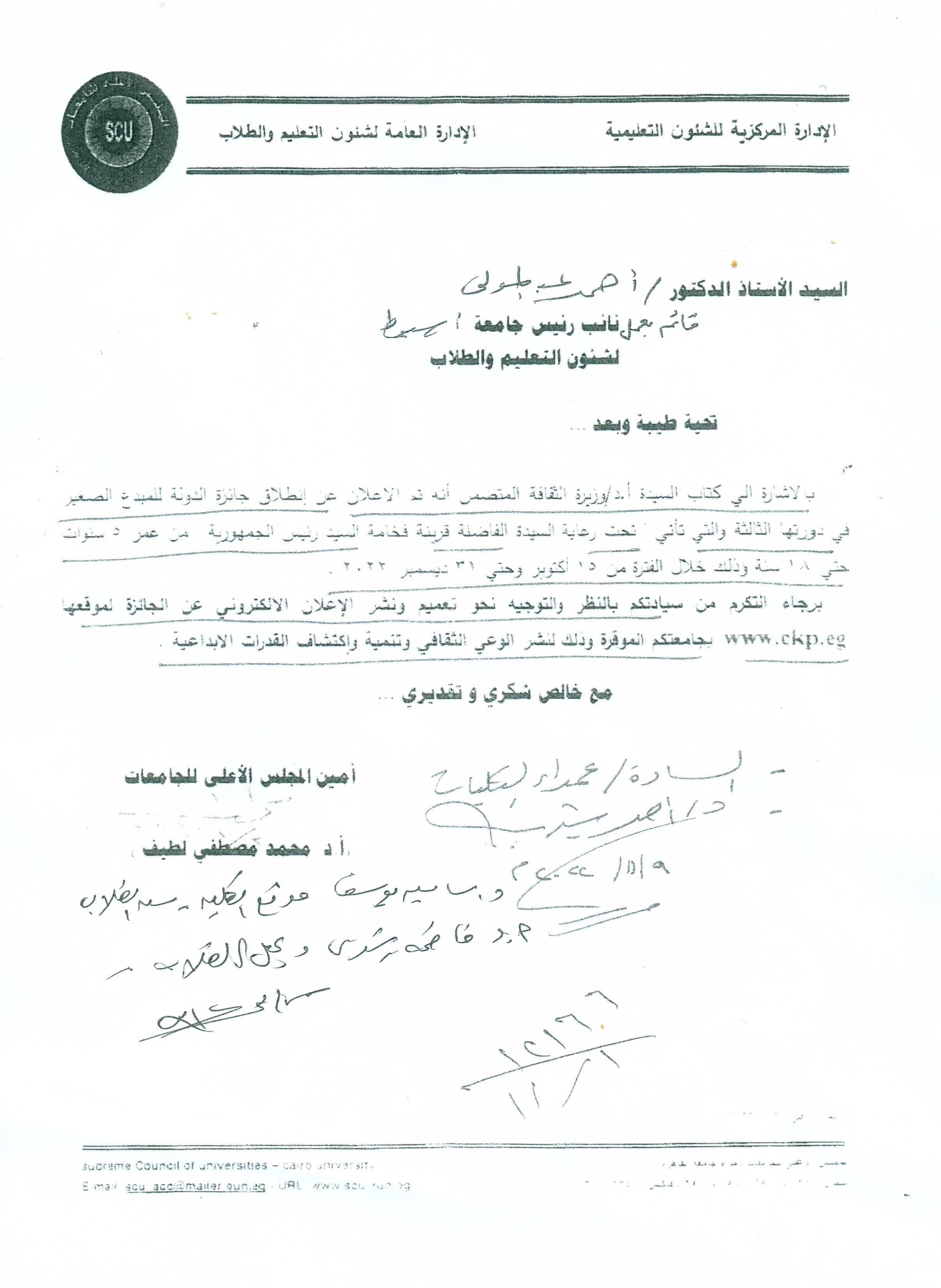 وذلك لنشر الوعي الثقافى وتنمية وإكتشاف القدرات الإبداعية