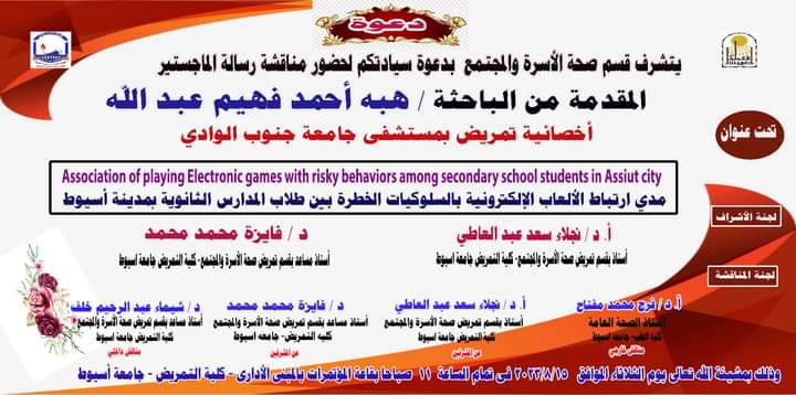 ( مدى ارتباط الألعاب الإلكترونية بالسلوكيات الخطرة بين طلاب المدارس الثانوية بمدينة اسيوط )