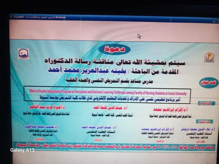 ( تاثير برنامج تعليمى نفسى على الإدراك وتحديات التعليمى الالكترونى لدى طلاب كلية التمريض جامعةأسيوط)