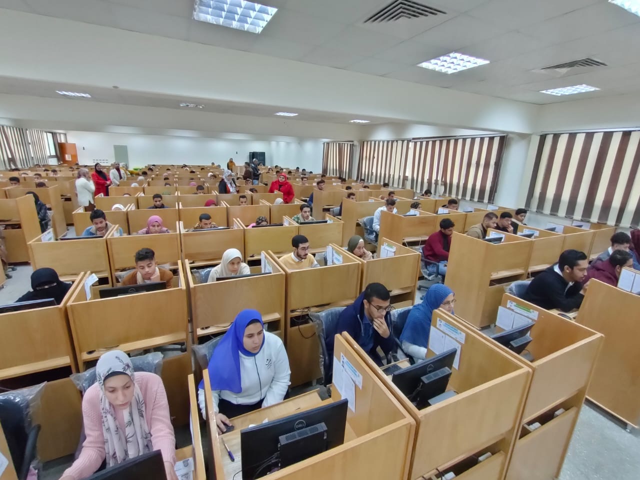 أداء اليوم طلاب الفرقة الأولي امتحان مادة أساسيات التمريض ١للعام الجامعي٢٠٢٣/٢٠٢٢ بقاعات الاختبارات الالكترونية بالجامعة وسط إجراءات احترازية مشددة للحفاظ على صحة وسلامة الطلاب