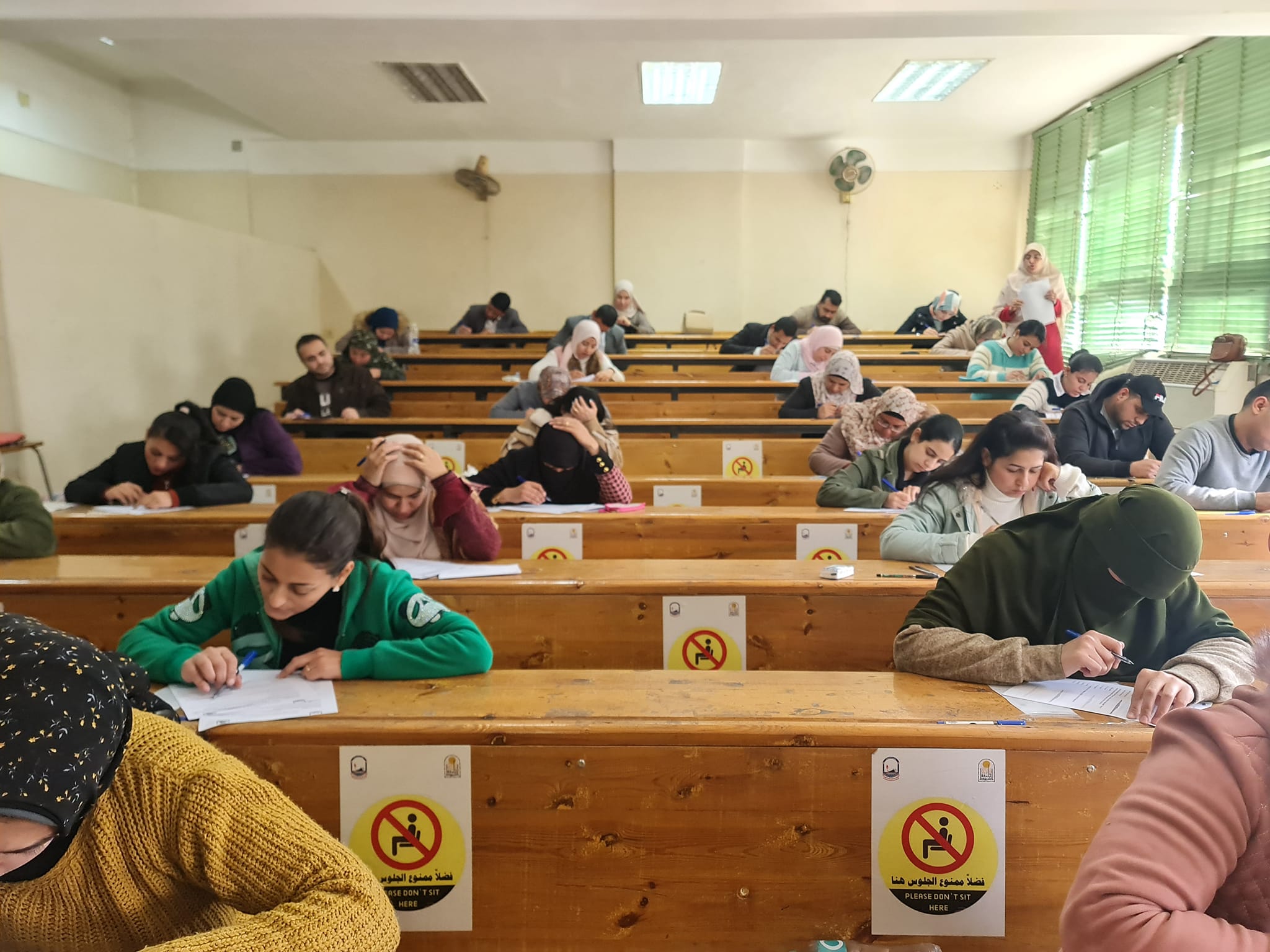 بدء طلاب الدراسات العليا اول ايام الامتحانات للفصل التمهيدي للماجستير بمادة التنمية البشرية حيث أدى الامتحان اكثر من ١٠٠ طالب وطالبة