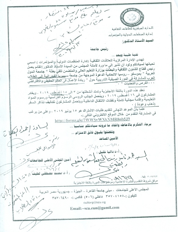 دعوة موجهة من جامعة سيبيريا الفيدرالية إلى الطلاب العرب للمشاركة في الدورة الصيفية التدريبية حول "ريادة الأعمال في العالم الحقيقي والافتراضي ... الفرص والتحديات"