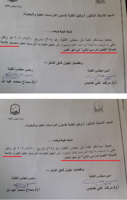 هااااااام لطلاب الدراسات العليا: تحديد مواعيد امتحانات الفصل الدراسي الثاني لدرجتي الماجستير والدكتوراه (لائحة قديمة – لائحة حديثة) 1 يونيو 2020 هااااااام لطلاب الدراسات العليا: تحديد مواعيد امتحانات الفصل الدراسي الثاني لدرجتي الماجستير والدكتوراه (لائحة قديمة – لائحة حديثة)