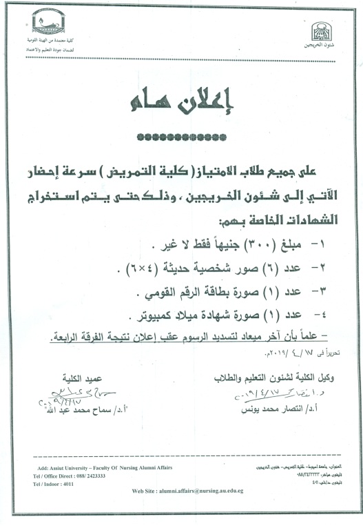 هام لطلاب الامتياز لاستخراج الشهادات الخاصة بهم 21 أبريل 2019 هام لطلاب الامتياز لاستخراج الشهادات الخاصة بهم
