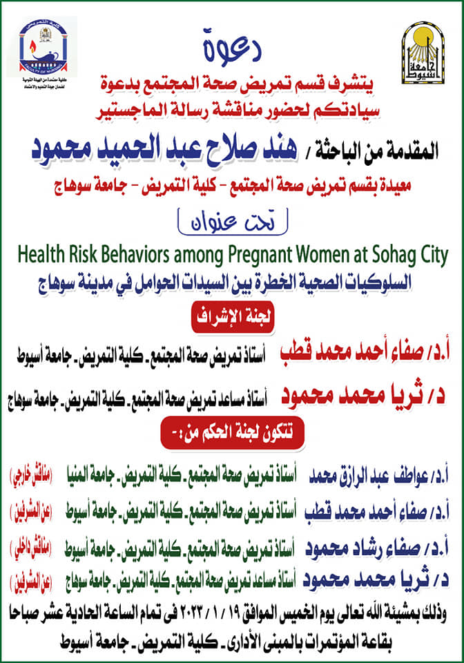 د/ ثريا محمد محمد أستاذ مساعد تمريض صحة المجتمع كلية التمريض بجامعة سوهاج (عن المشرفين)