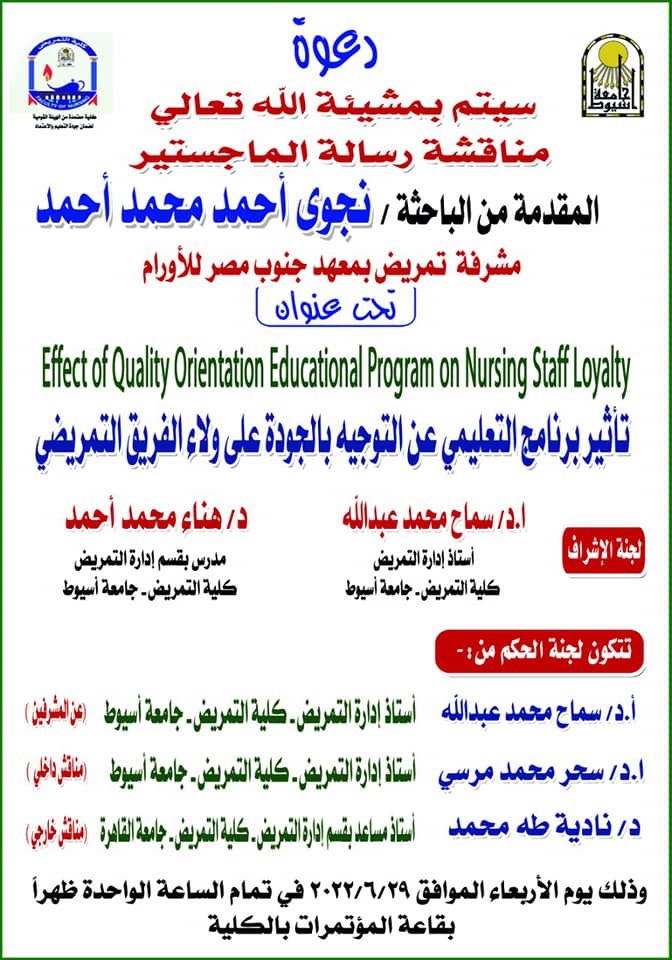 (تاثير البرنامج التعليمى عن التوجية بالجودة على ولاء الفريق التمريضى)
