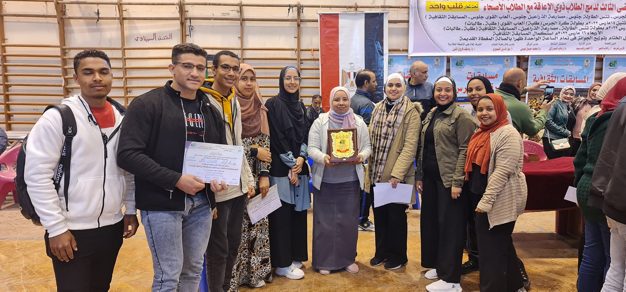 باجمل التهانى القلبية للطلاب المشاركين فى المهرجان الرياضى لدمج طلاب ذوى الإعاقة مع الطلاب الاصحاء الذى اقامتة إدارة اللياقة البدنية على مستوى الجامعة