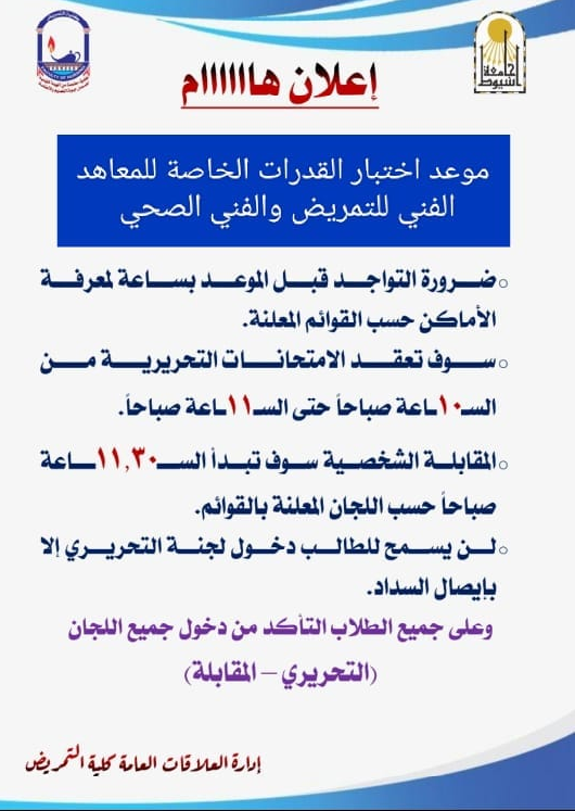 موعد اختبار القدرات الخاصة للمعاهد الفني للتمريض والفني الصحي