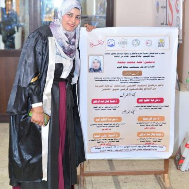 تهنئة بقبول رسالة الماجستير تتقدم كلية التمريض – جامعة أسيوط بخالص التهنئة للباحثة/ ياسمين أحمد محمد محمد أخصائية تمريض بمستشفى طهطا العام بمناسبة قبول رسالة الماجستير