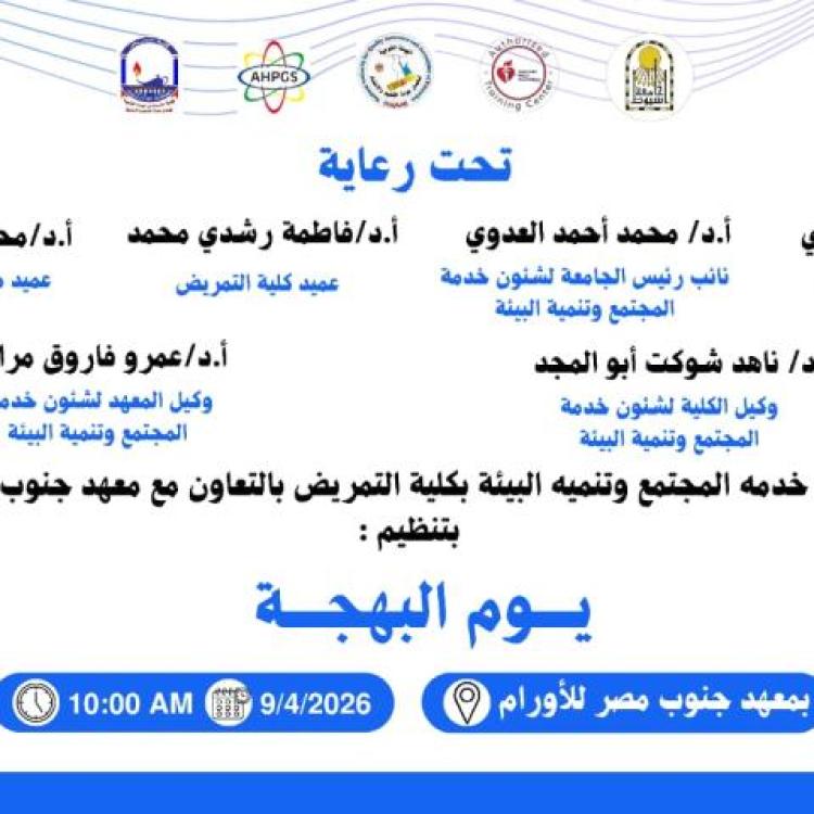 كلية التمريض- جامعة أسيوط تنظم "يوم بهجة لأطفال الأورام بمعهد جنوب مصر للأورام تحت رعاية الأستاذ الدكتور أحمد المنشاوي رئيس جامعة أسيوط. والأستاذ الدكتور محمد أحمد العدوي نائب رئيس الجامعة لشؤون خدمة المجتمع وتنمية البيئة