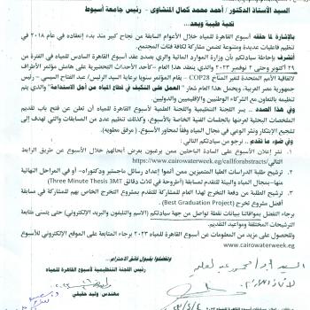وزارة الموارد المائية والري بصدد عقد اسبوع القاهرة السادس للمياه في الفترة من 29 أكتوبر وحتي 2نوفمبر والذي ينعقد هذا العام