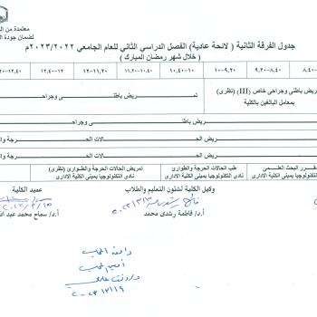 جدول الفرقة الثانية( لائحة عادية) الفصل الدراسي الثاني للعام الجامعي 2022) ( خلال شهر رمضان المبارك)