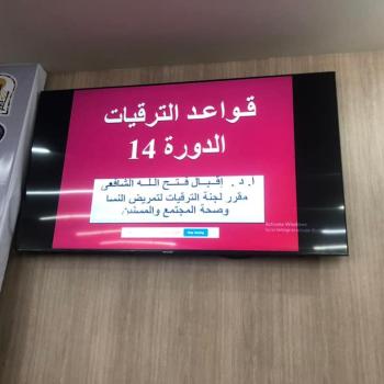 احدى جلسات المؤتمر الدولى الخامس لكلية التمريض جامعة اسيوط والثالث لكليات التمريض بصعيد مصر ومحاضرة عن قواعد الترقيات الدورة ١٤ وتحاضر بها السيد الأستاذ الدكتور إقبال فتح الله الشافعى مقرر لجنة الترقيات لتمريض النساء وتمريض صحة المجتمع وتمريض المسنين