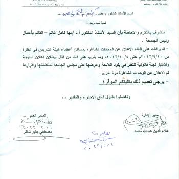الغاء الاعلان عن الوحدات الشاغرة بمساكن أعضاء هيئة التدريس فى الفترة من 2022/9/20م حتى 2022/10/4م