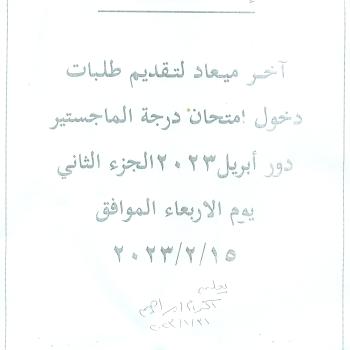 إعلان *** آخر ميعاد لتقديم طلبات دخول إمتحان درجة الماجستير