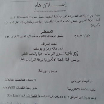 ومتابعة السيد الأستاذ الدكتور/ نعمة…