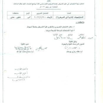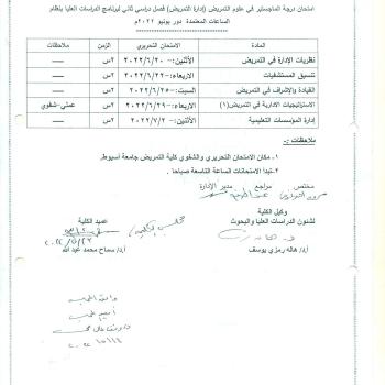 جدول امتحان درجة الماجستير فى علوم التمريض (إدارة التمريض) فصل دراسي ثانى لبرنامج الدراسات العليا بنظام الساعات المعتمدة دور يونيو 2022م