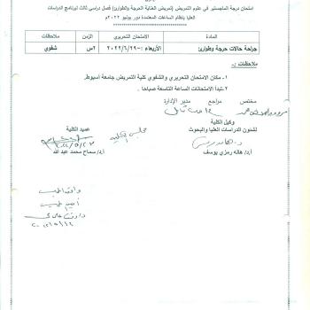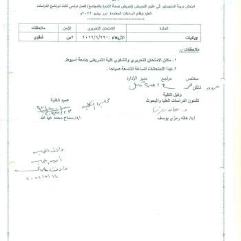 جدول امتحان درجة الماجستير فى علوم التمريض (تمريض صحة الأسرة والمجتمع) فصل دراسي ثالث لبرنامج الدراسات العليا بنظام الساعات المعتمدة دور يونيو 2022م
