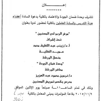 سوف يتم بمشيئة الله تعالى اجتماع لجنة شئون التعليم والطلاب برئاسة السيدة الدكتور /…