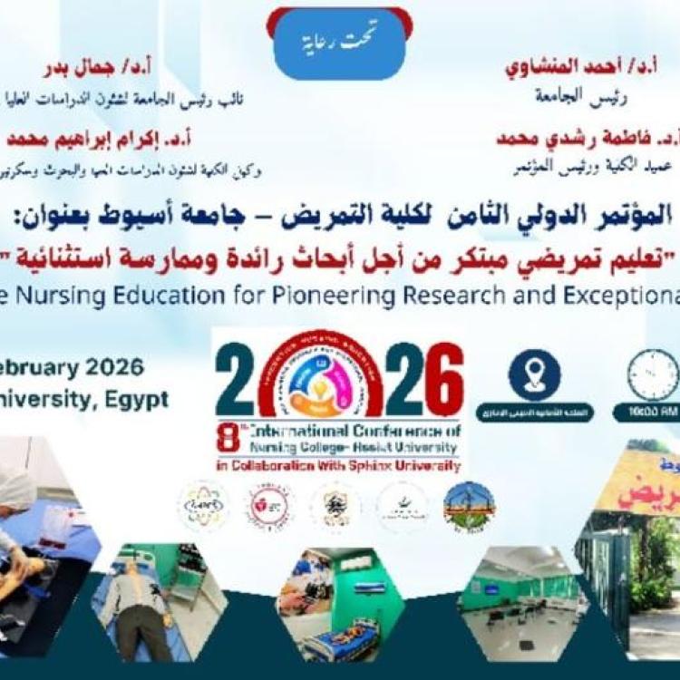 الأحد القادم المؤتمر الدولي الثامن لكلية التمريض – جامعة أسيوط بعنوان: " تعليم تمريضي مبتكر من أجل أبحاث رائدة وممارسة استثنائية " Innovative Nursing Education for Pioneering Research and Exceptional Practice